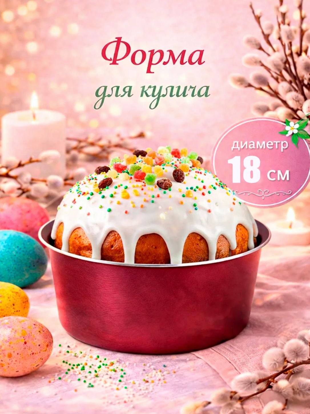 Форма для куличей, диаметр 18 см, антипригарное покрытие, без крышки, бордовая
