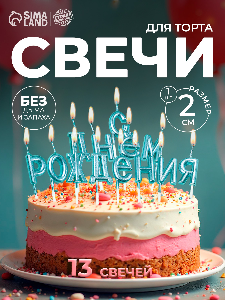 Свечи / Свечи для торта: "С Днем Рождения" / Голубые