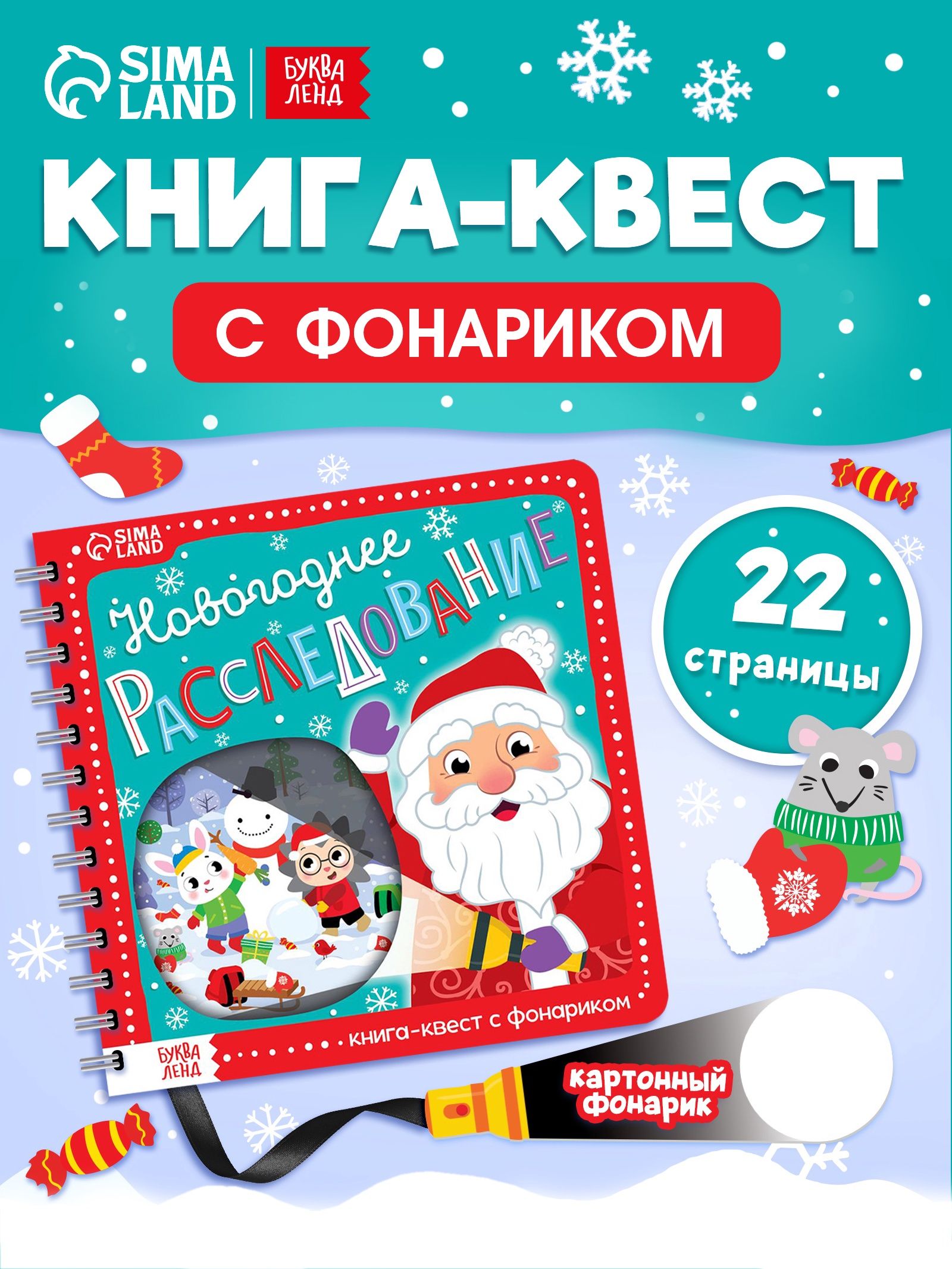 Книга с фонариком, "Новогоднее расследование", Буква-Ленд, книги для детей 3+