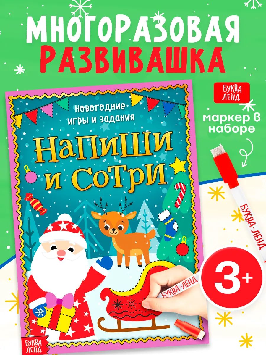 Новогодние книги для детей, Буква-Ленд, "Новогодние игры и задания", тетрадь пиши стирай 3-4 года