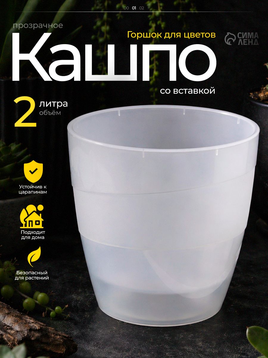 Кашпо со вставкой "Грация", объем 2 л, цвет прозрачный