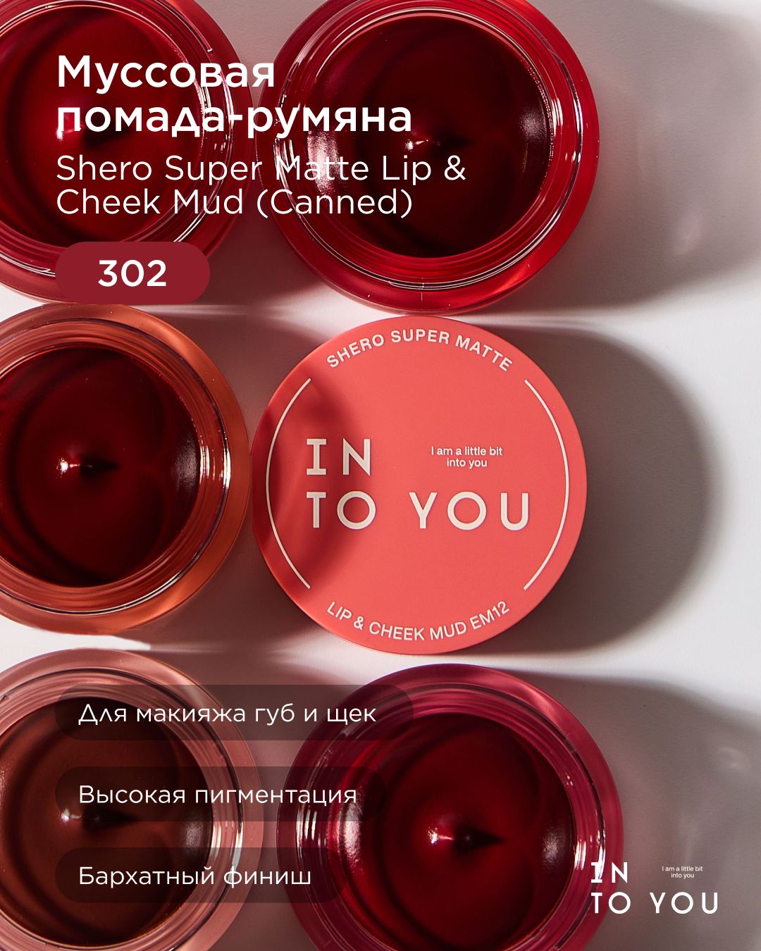 INTO YOU Кремовые румяна-помада Shero Super Matte Lip & Cheek Mud 302 (Canned)