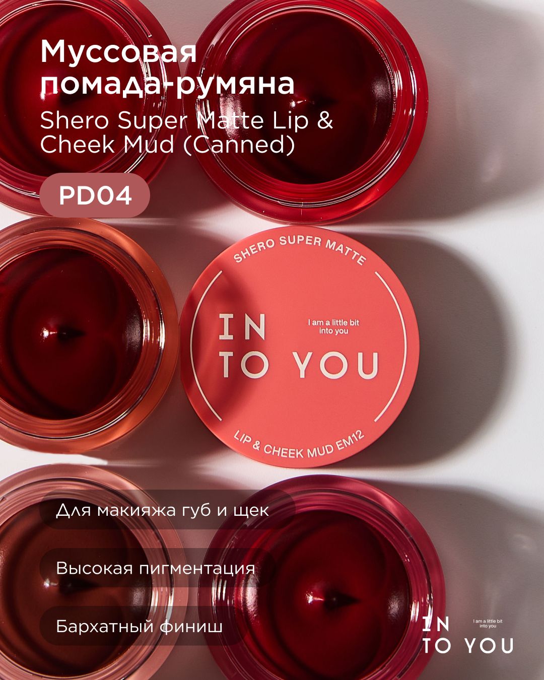INTO YOU Кремовые румяна-помада Shero Super Matte Lip & Cheek Mud PD04 (Canned