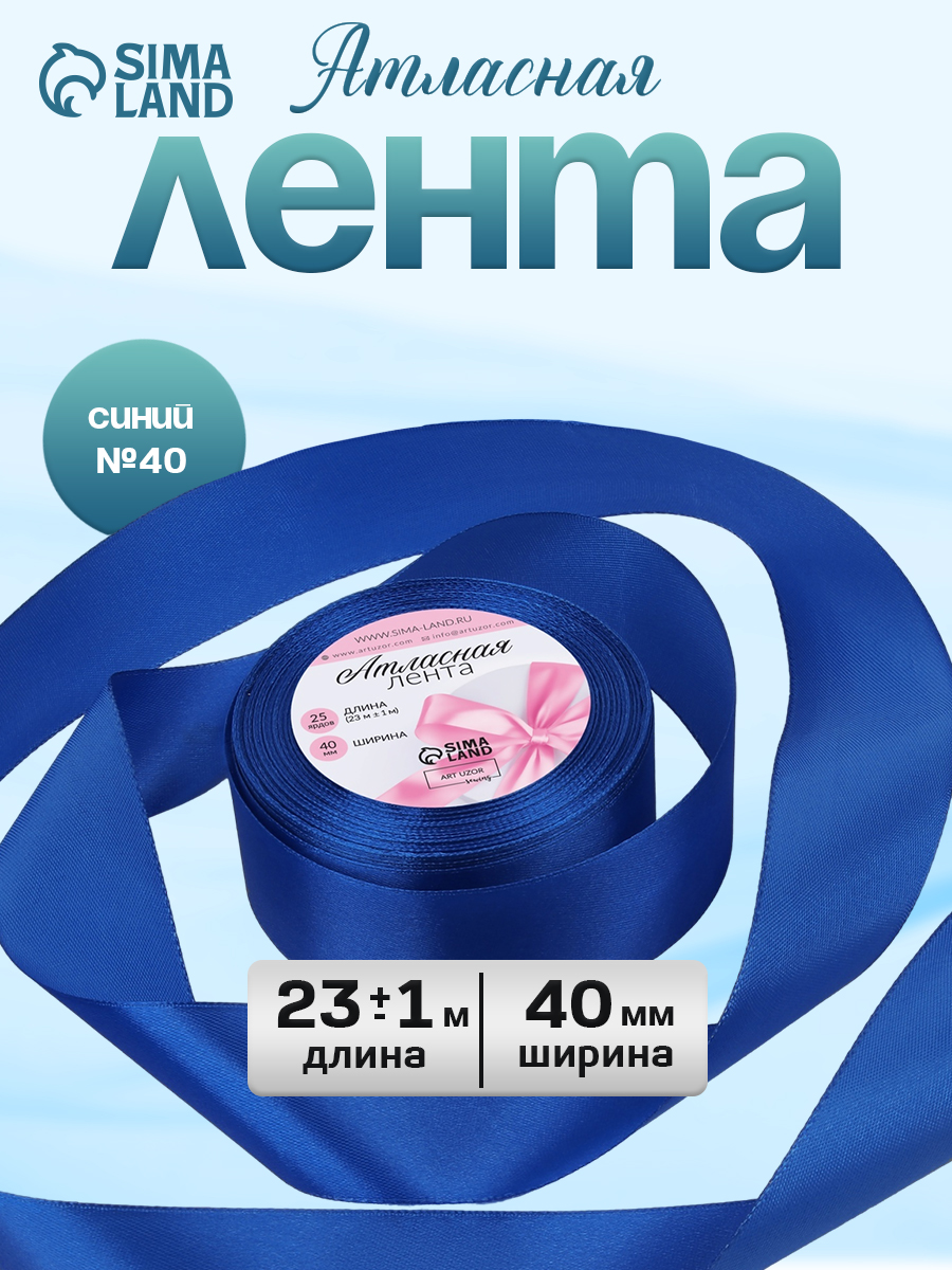 Атласная лента 40 мм х 23 м, синяя №40 универсальная декоративная лента для упаковки, декора и рукоделия