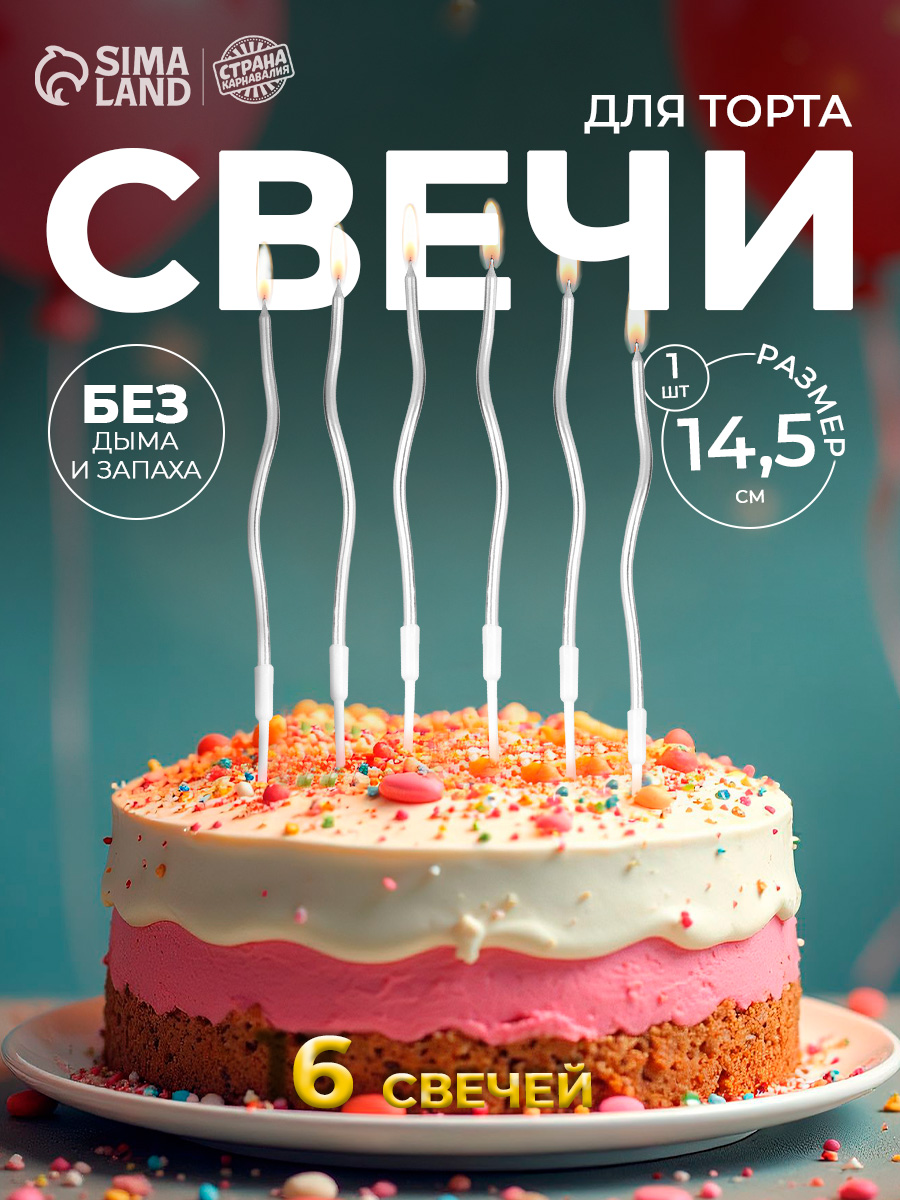 Свечи / Свечи для торта Серпантин коктейльные / Серебристые 6 шт