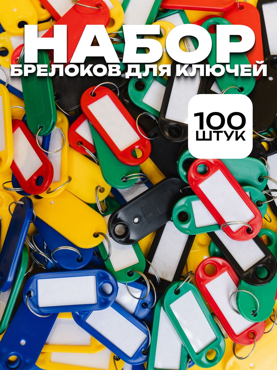 Бирки для ключей, 100шт / пластиковые, 52х23мм, разноцветные /бирка на ключи