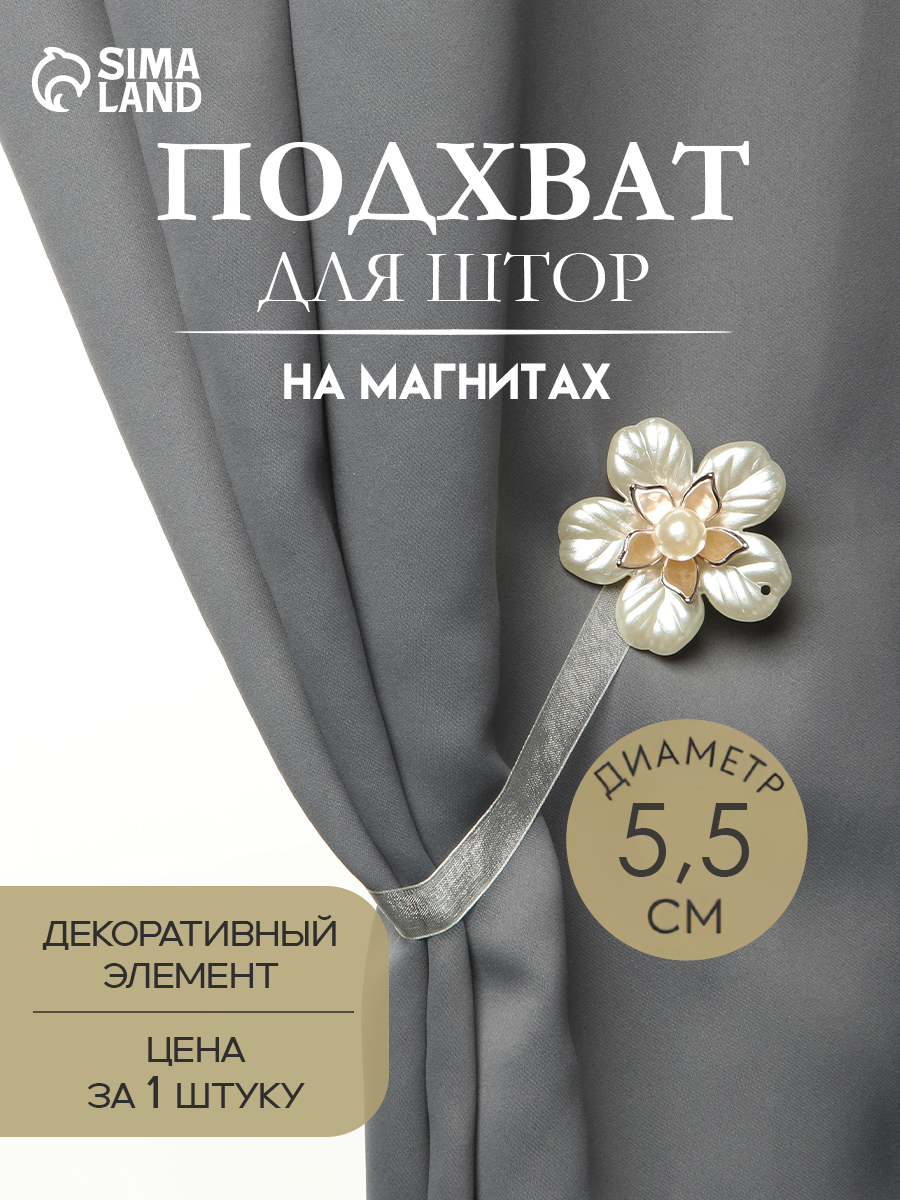 Подхват для штор "Перламутровый пятилистник", диаметр 5,5 см, цвет белый