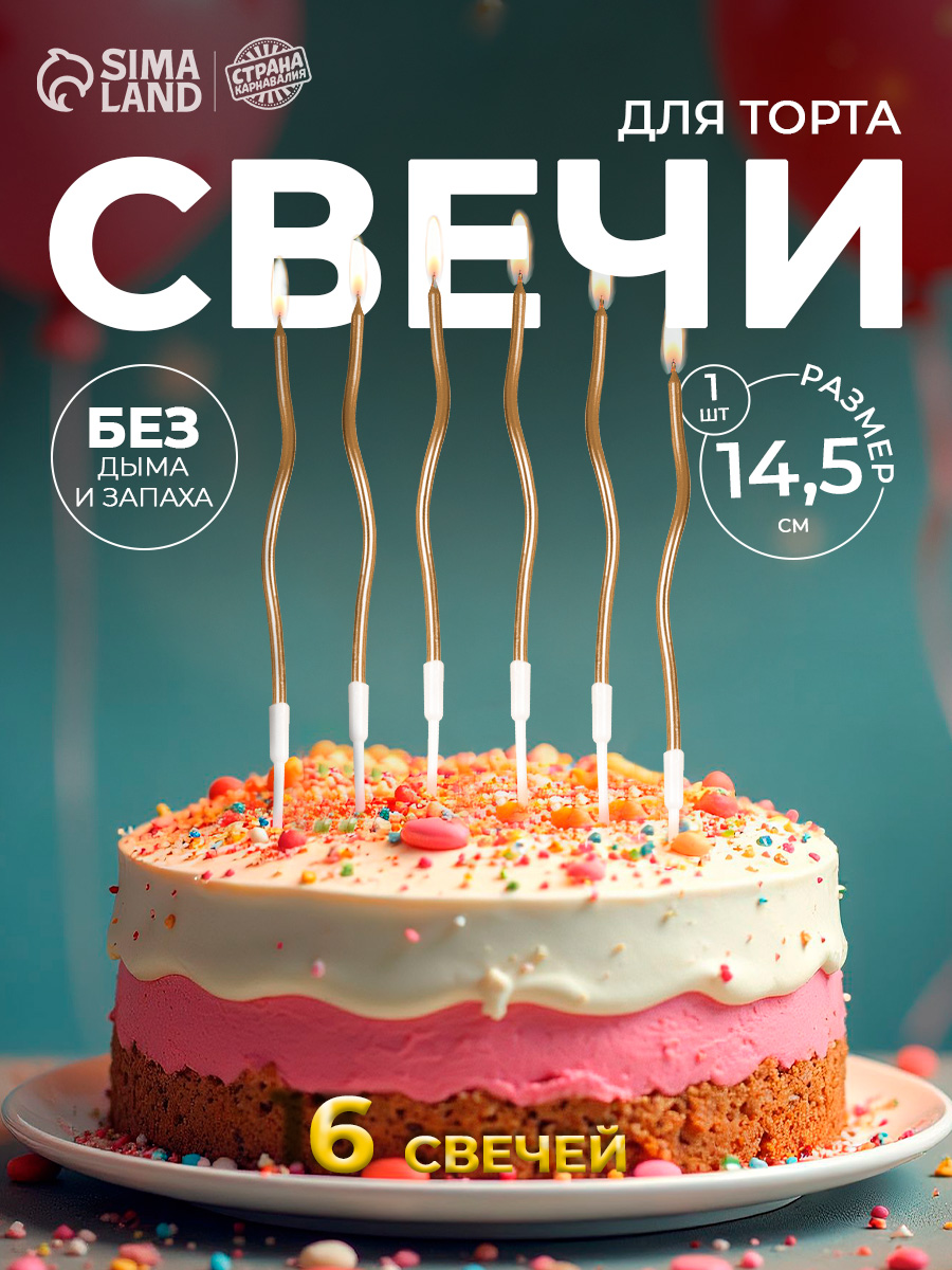 Свечи / Свечи для торта витые Серпантин / Шампань 6 шт