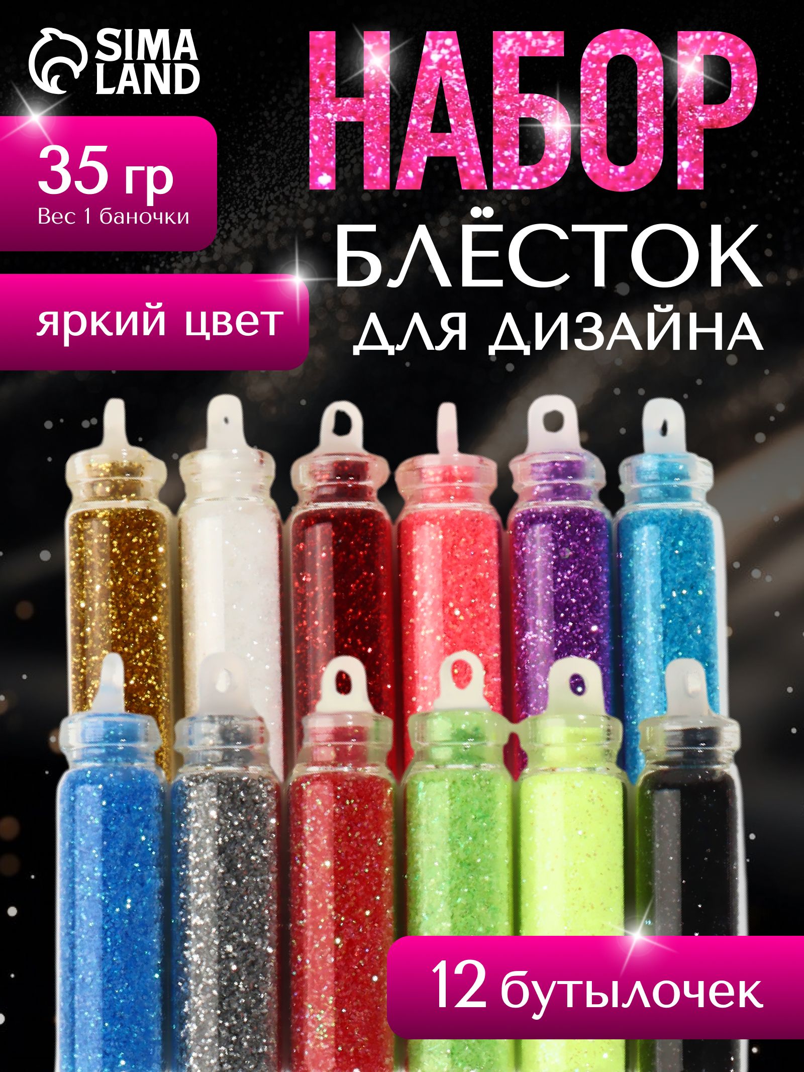 Блёстки для декора ногтей, глиттер для маникюра и дизайна набор 12 бутылочек, разноцветные