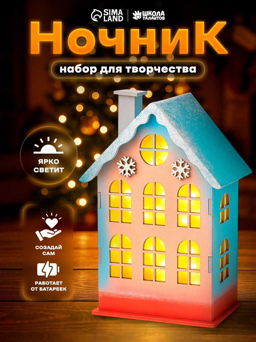 Набор для творчества, "Снежный домик", NL430, 19 см, деревянный, ночник своими руками, новогодний подарок для детей 2026