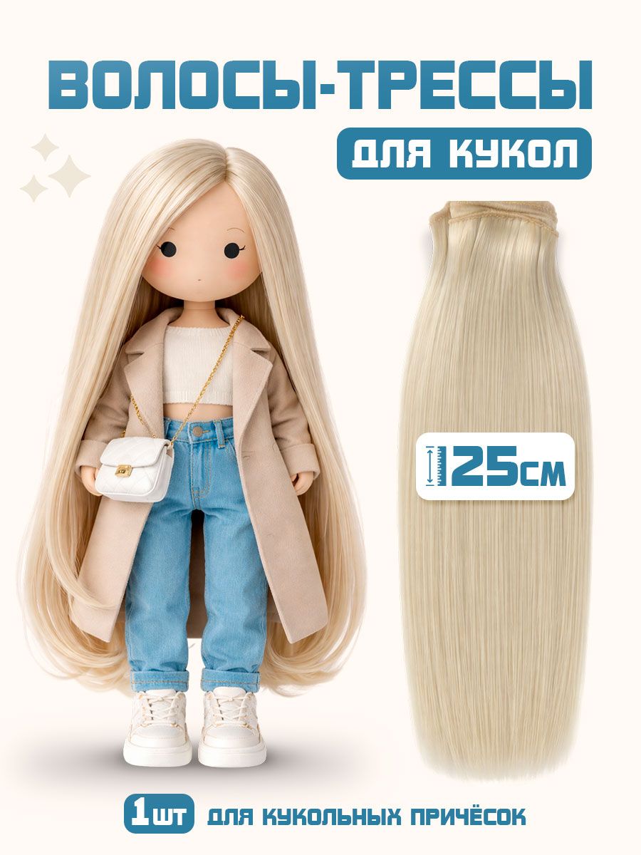 Волосы для кукол трессы, длина волос 25 см, ширина 100 см, цвет холодный блонд, трессы для кукол