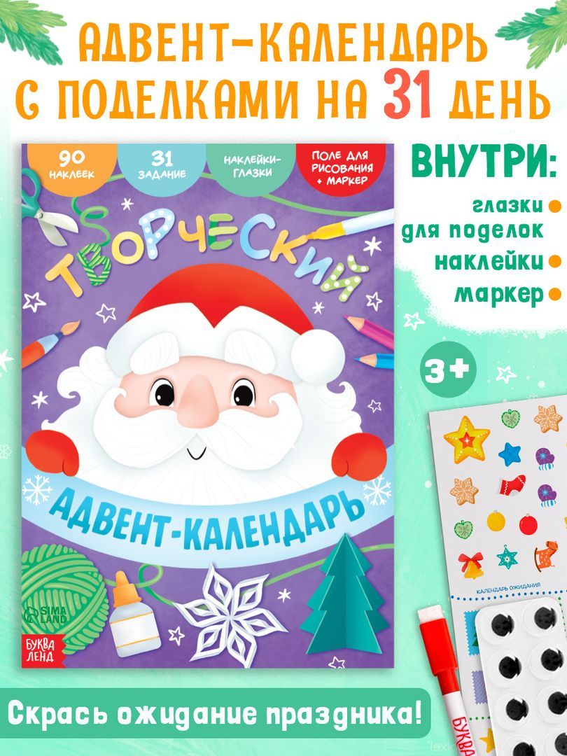 Адвент календарь для детей, Буква Ленд, раскраска, наклейки для детей