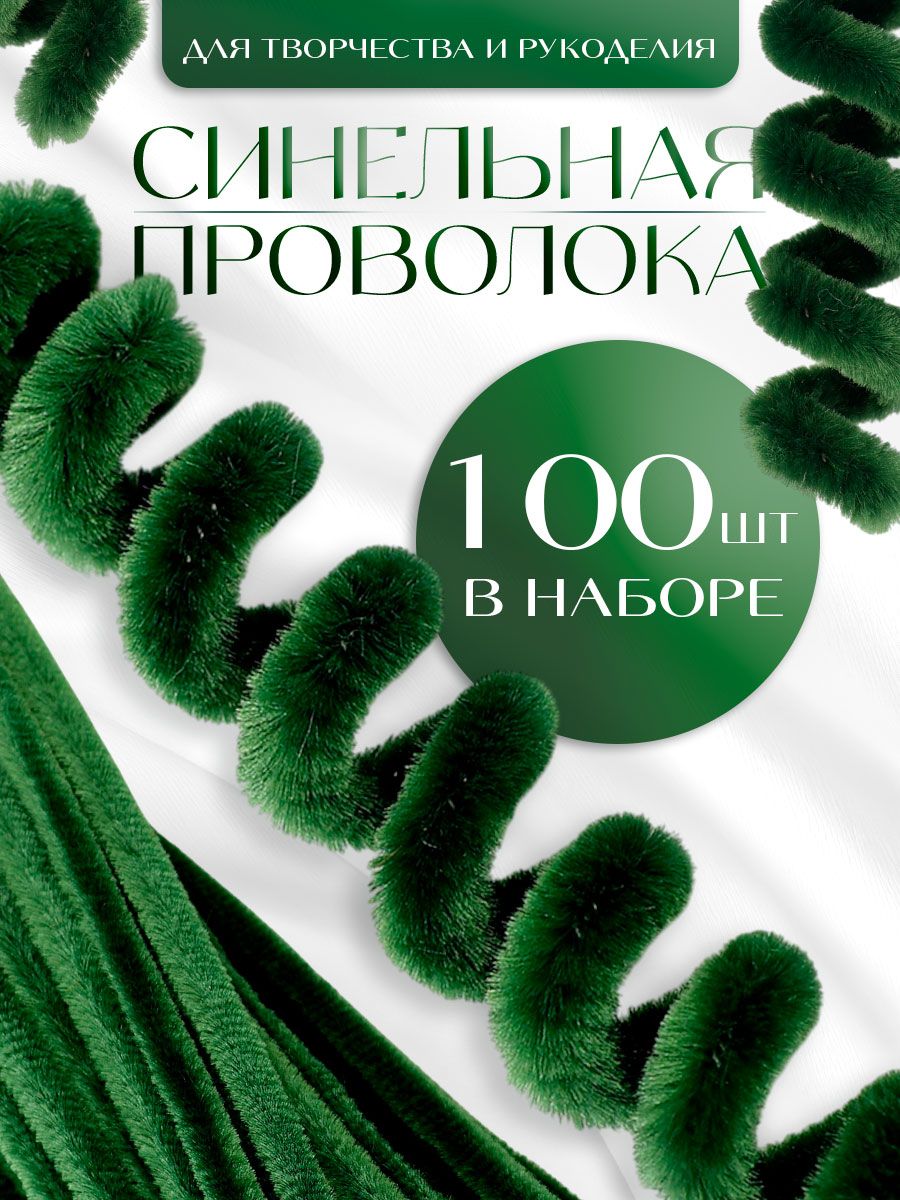 Синельная проволока для рукоделия, набор 100 штук, 30 см, зеленая, для поделок и творчества