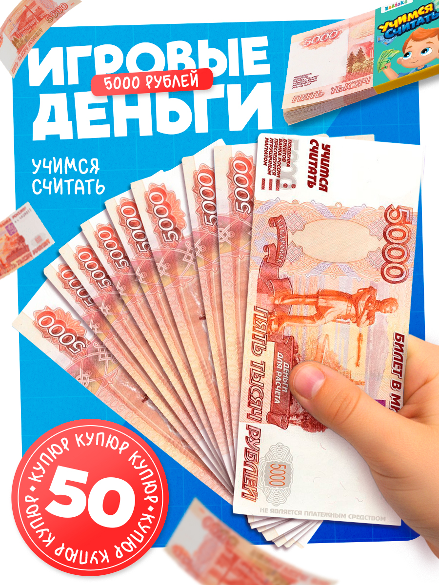 Сувенирные игрушечные деньги 5000 рублей, 50 купюр / Деньги игрушечные набор
