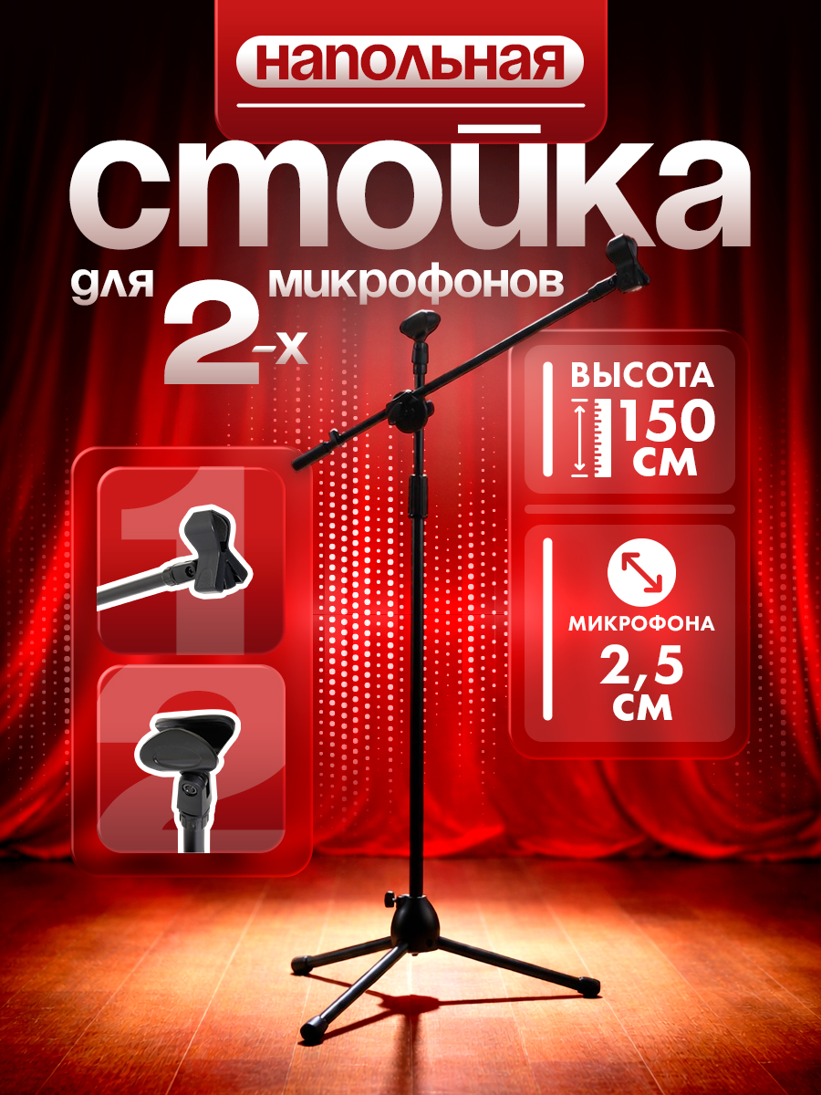 Стойка для микрофона напольная / Микрофонная стойка, под два микрофона