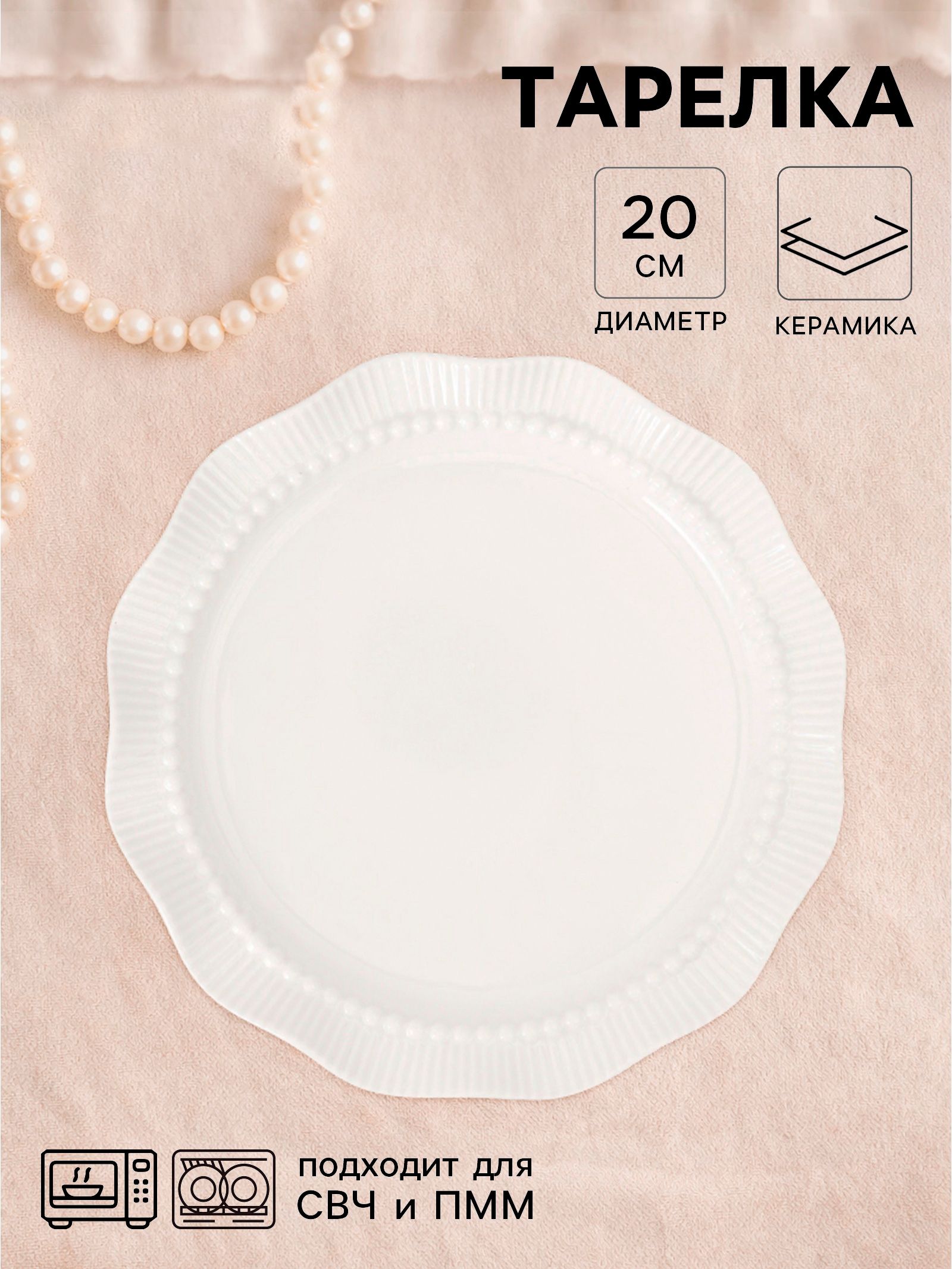Тарелка сервировочная 20 см, "Breeze", керамика, белая