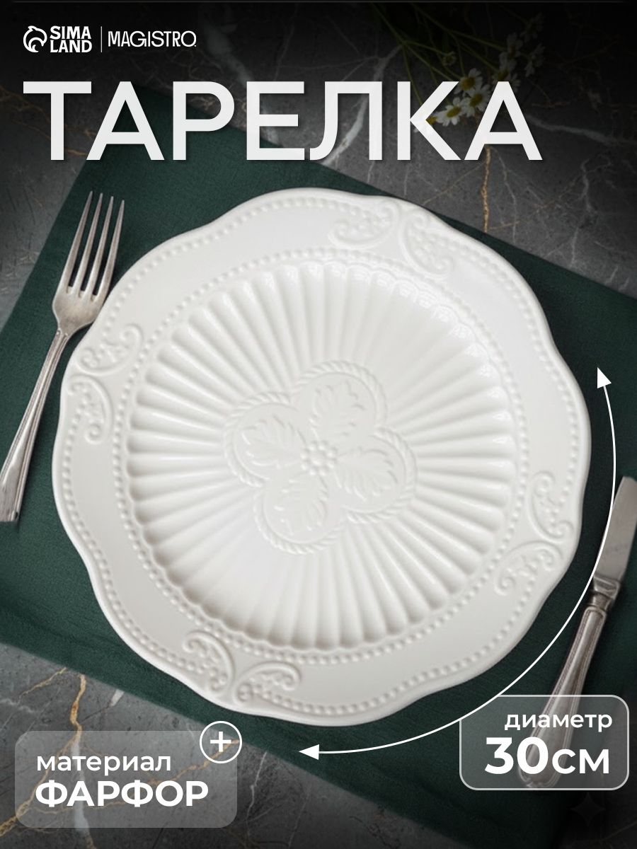 Тарелка сервировочная фарфоровая Magistro "Этюд", размер 30х2,5 см, цвет белый