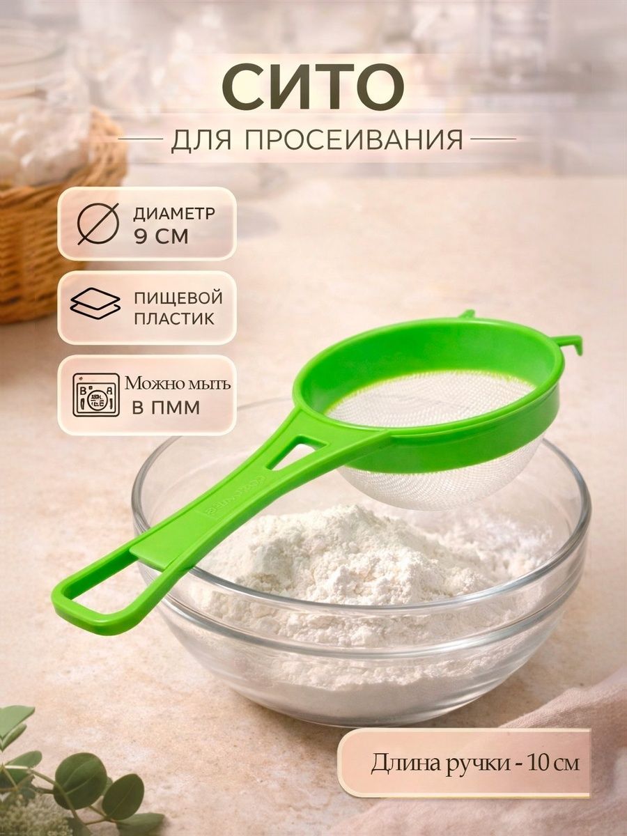 Сито для просеивания с ручкой Доляна, диаметр 9 см, зелёное