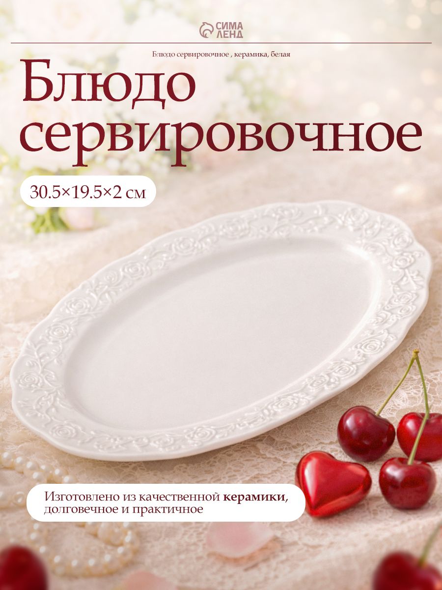 Блюдо сервировочное Garden rose, 30.5х19.5 см, керамика, белое