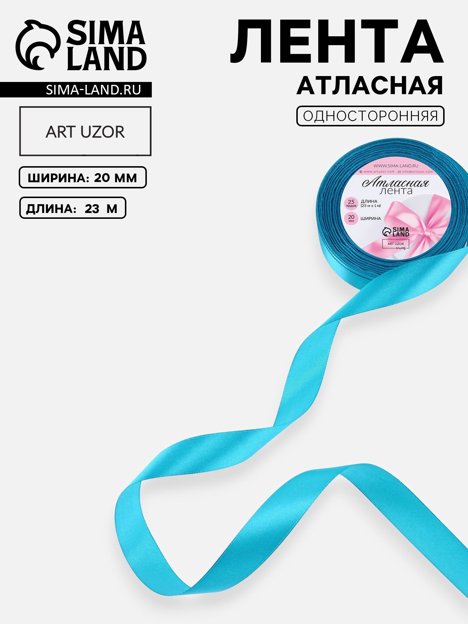 Лента атласная, 20 мм, 23 1 м, голубая №47