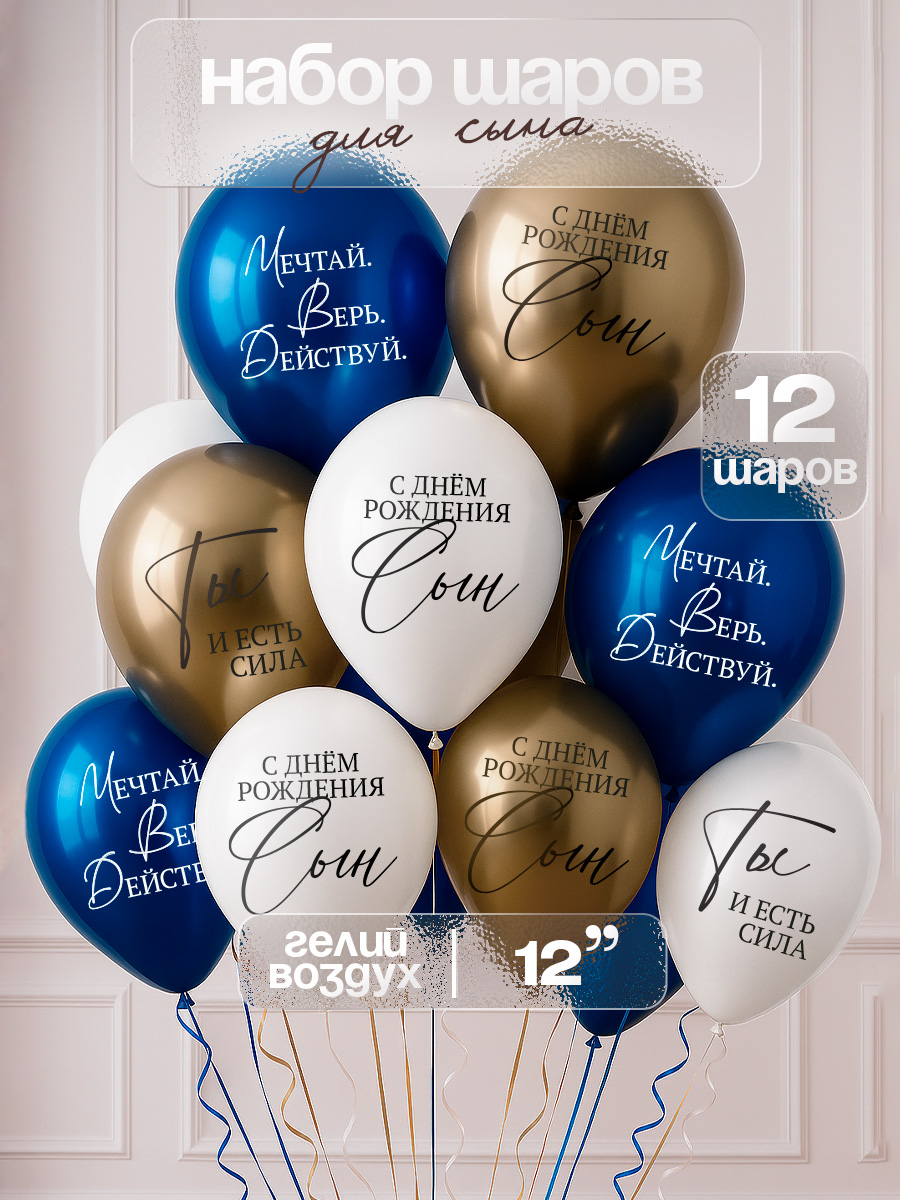 Шар воздушный "Любимому сыну" / Набор 12 шт. / 12"