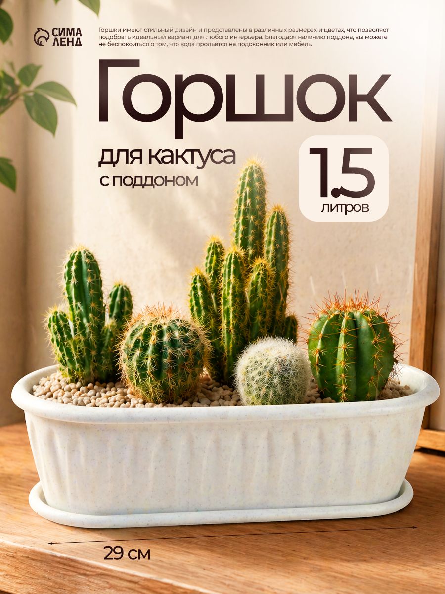 Горшок для цветов, 1,5 л, кашпо уличное, ящик пластиковый, для суккулентов и кактусов, с поддоном