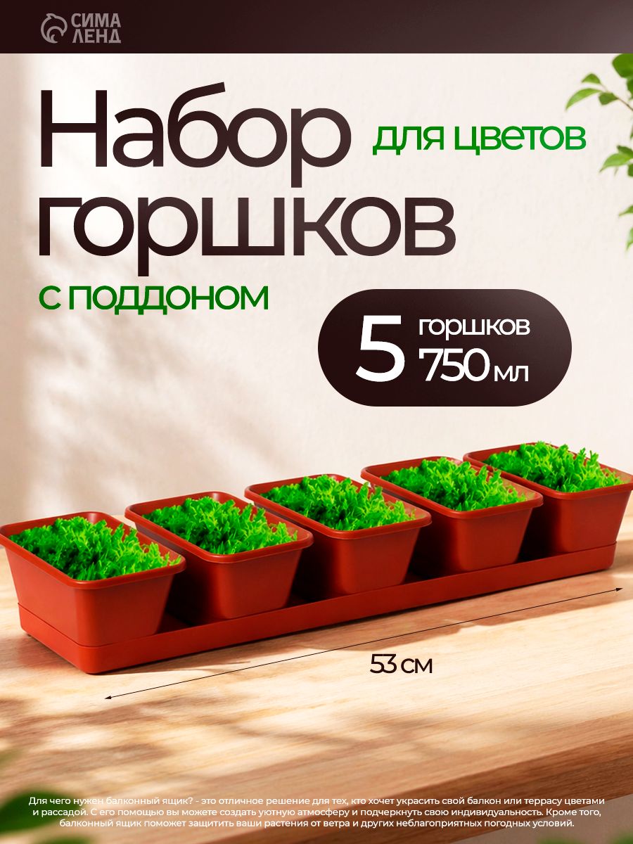 Набор горшков для цветов с поддоном Darel plastic, 750 мл, 53 см, 5 шт, цвет терракотовый