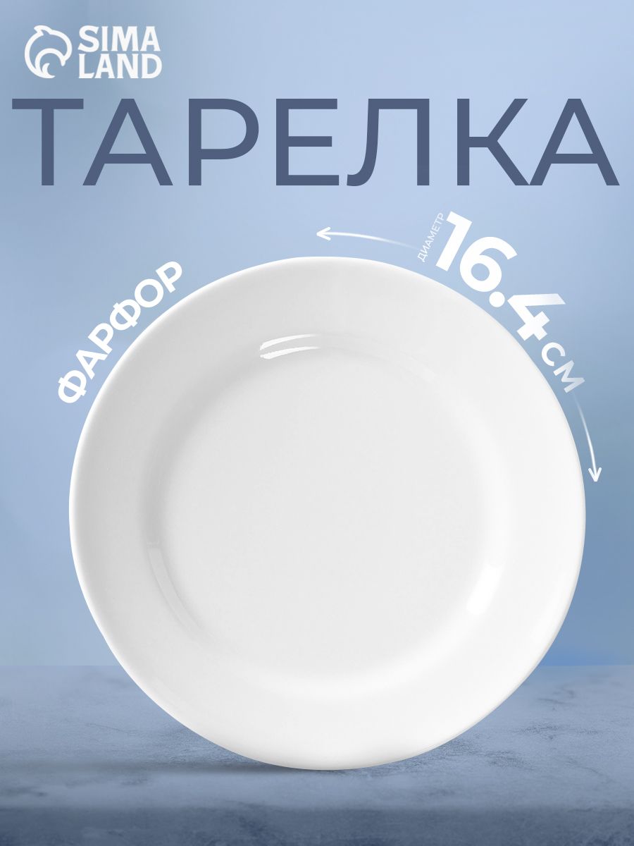 Тарелка десертная 16,4 см, фарфоровая, белая "Идиллия"