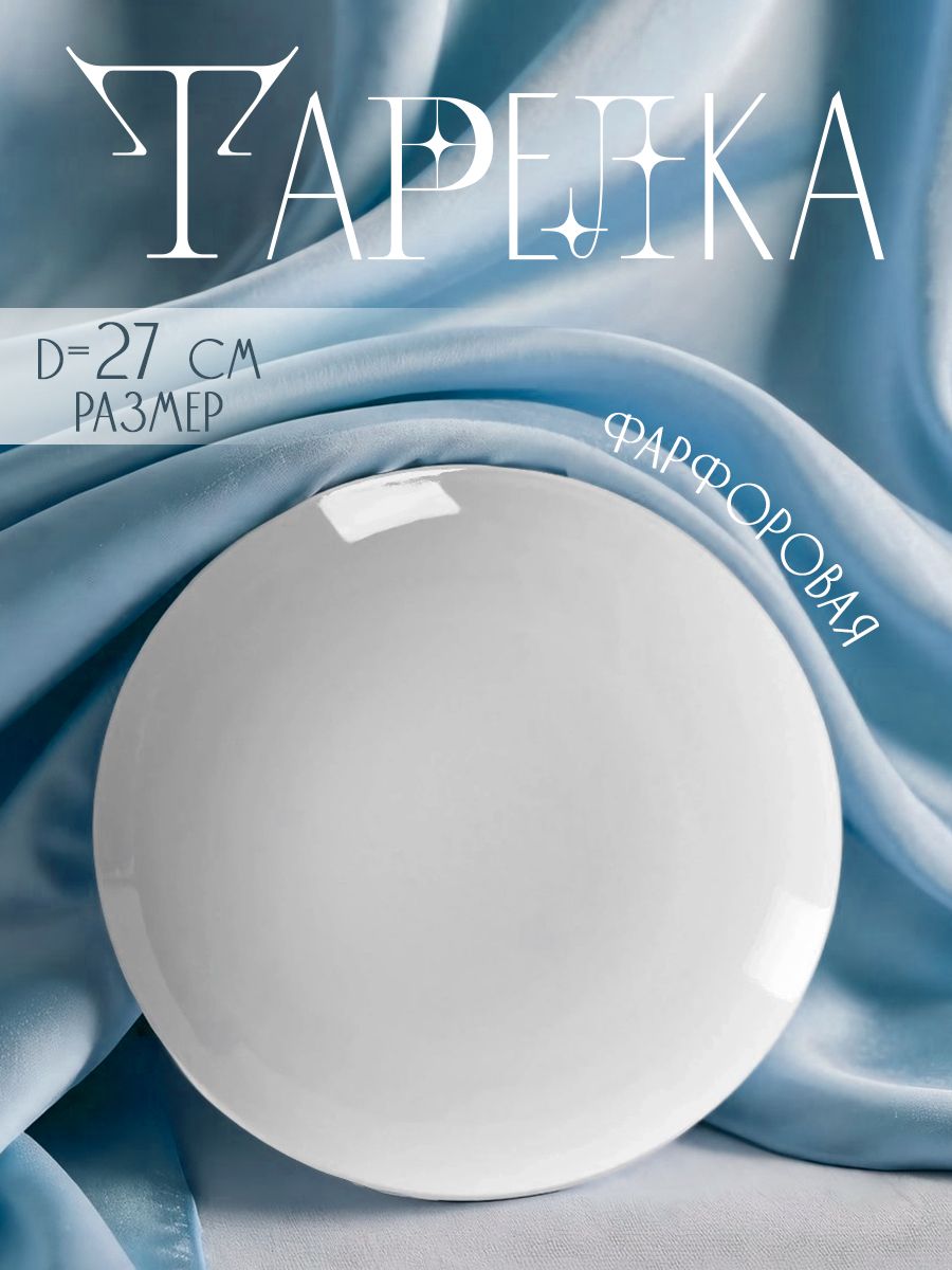 Тарелка обеденная фарфоровая 27 см, белая "Универсал"