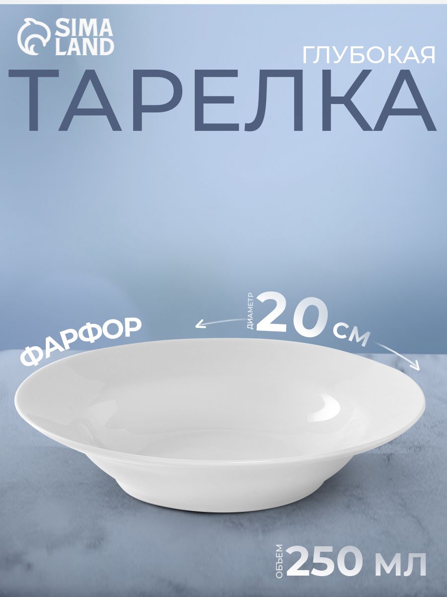 Тарелка глубокая 230 мл, фарфоровая 20 см, "Идиллия"