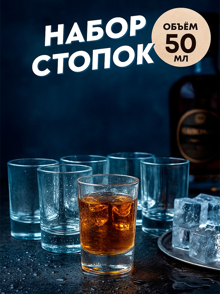 Набор стеклянных стопок "Гладкий", объем 50 мл, 6 шт