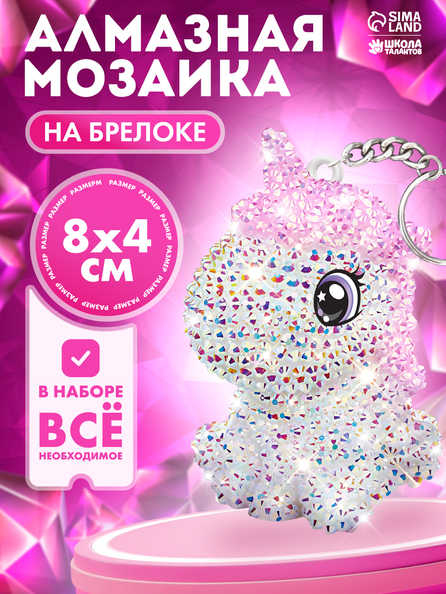 Алмазная мозаика брелок "Единорожка" 8 см / брелок своими руками
