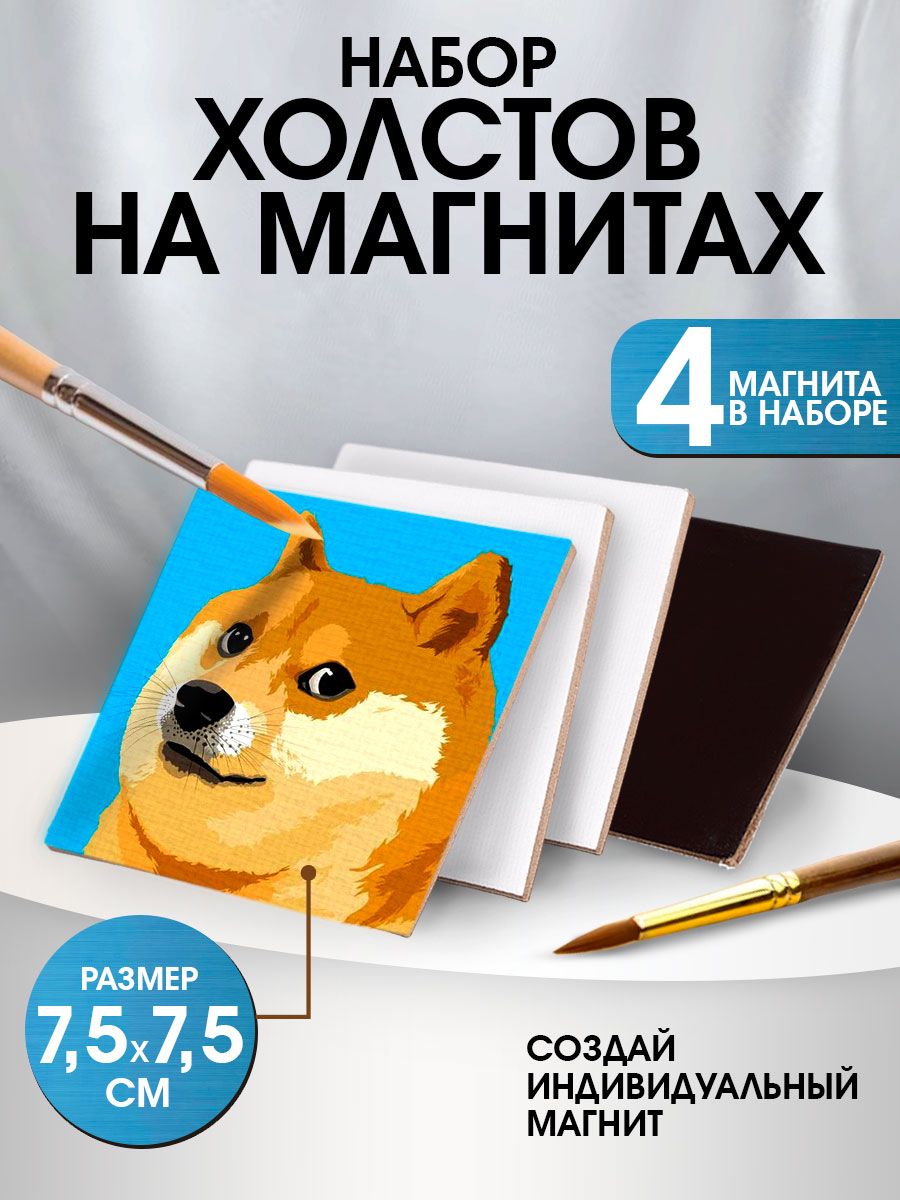Холсты на магните, 4 шт, 7,5 см / мини холсты для рисования / набор для творчества