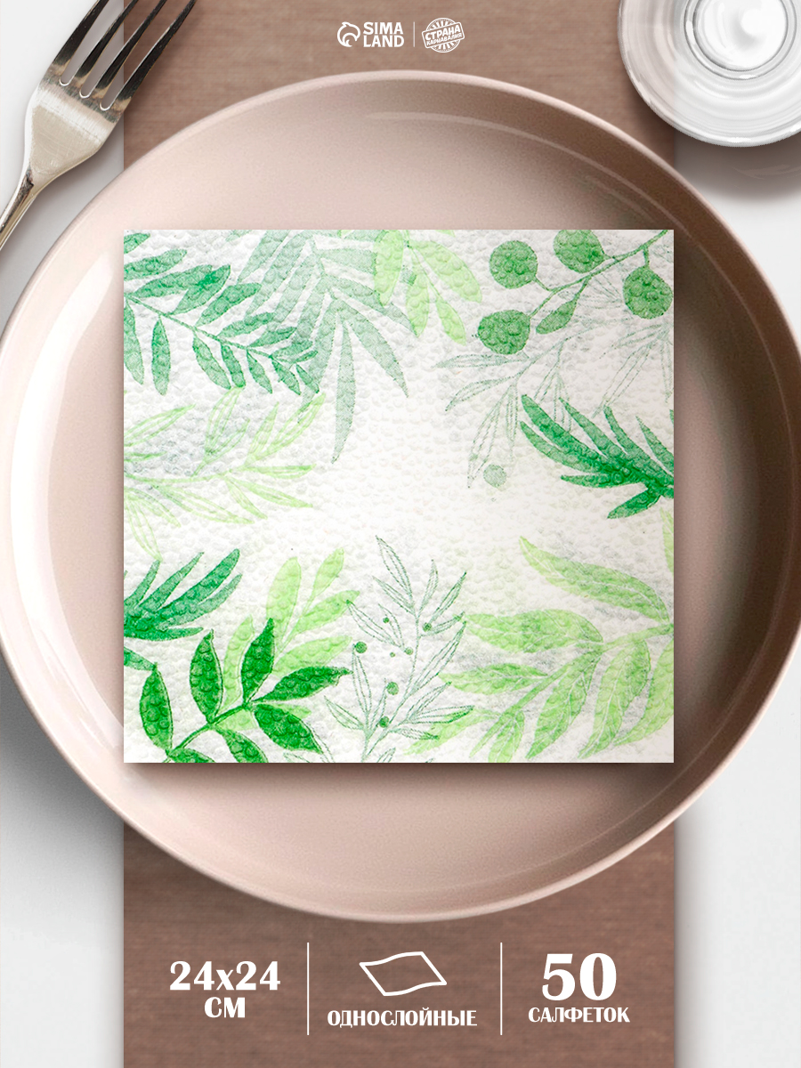 Салфетки бумажные однослойные "Узоры природы", 24х24 см, 50 шт