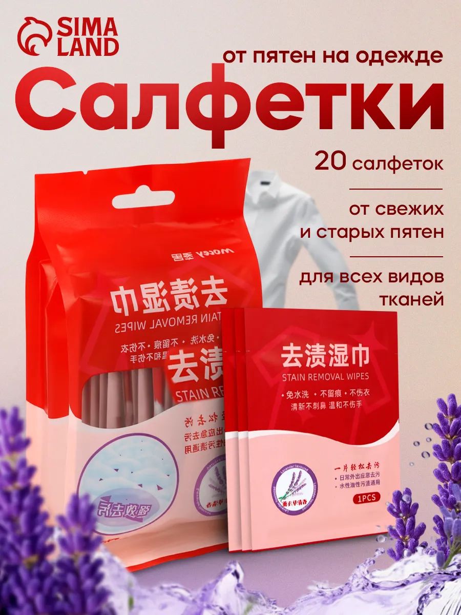 Салфетки от пятен на одежде / салфетки пятновыводящие 20шт