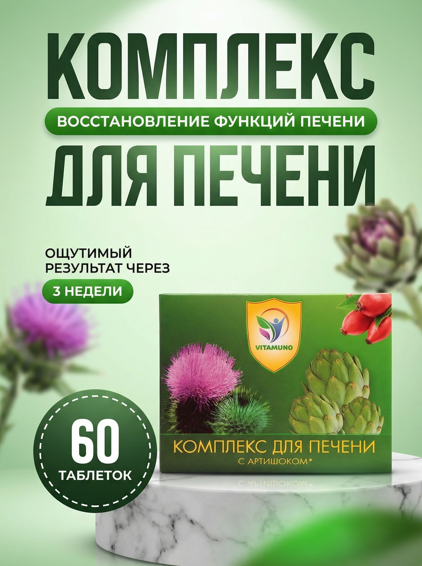 Расторопша, капсулы для печени, артишок, очищение печени / Vitamuno 60 таблеток