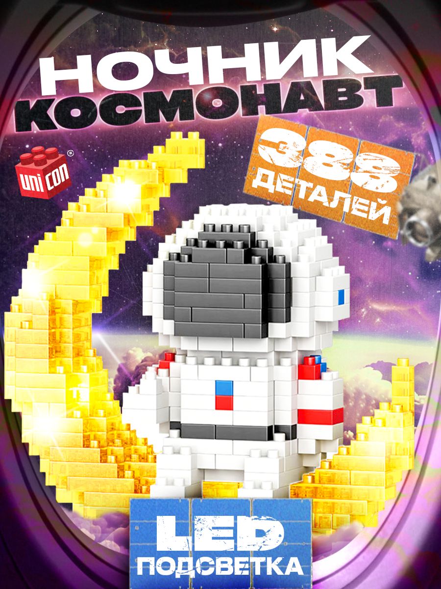 Конструктор 3д, LED подсветка "Космонавт" 388 деталей, 3d конструктор