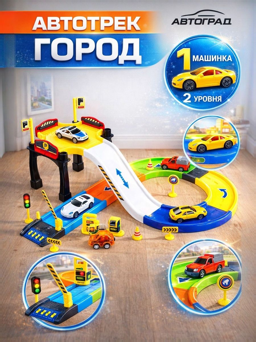 Автотрек с машинками " Город " / Парковка для машинок / Игрушки для мальчиков