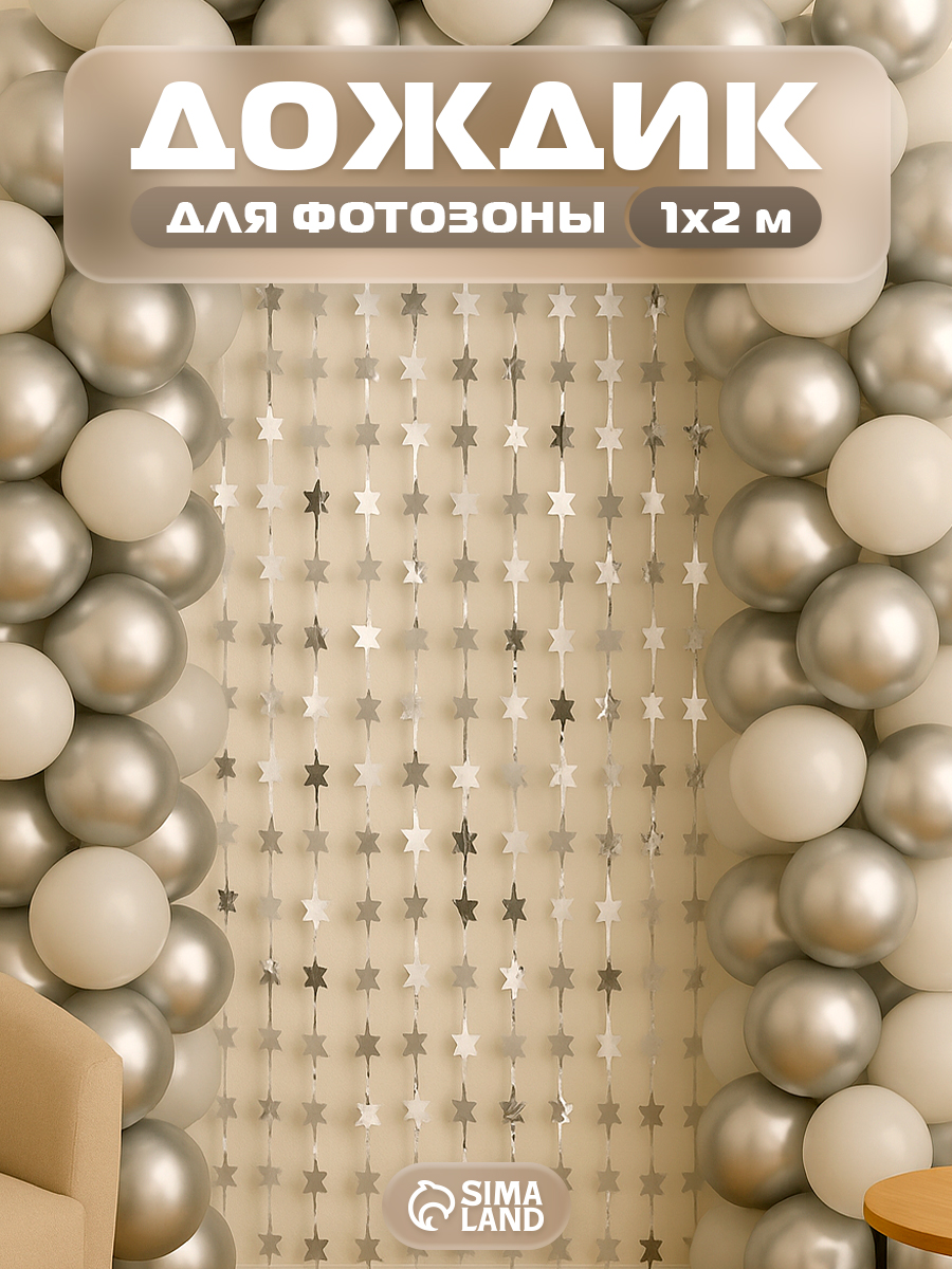 Занавес для фотозоны Звёзды , серебристый 1 2 м