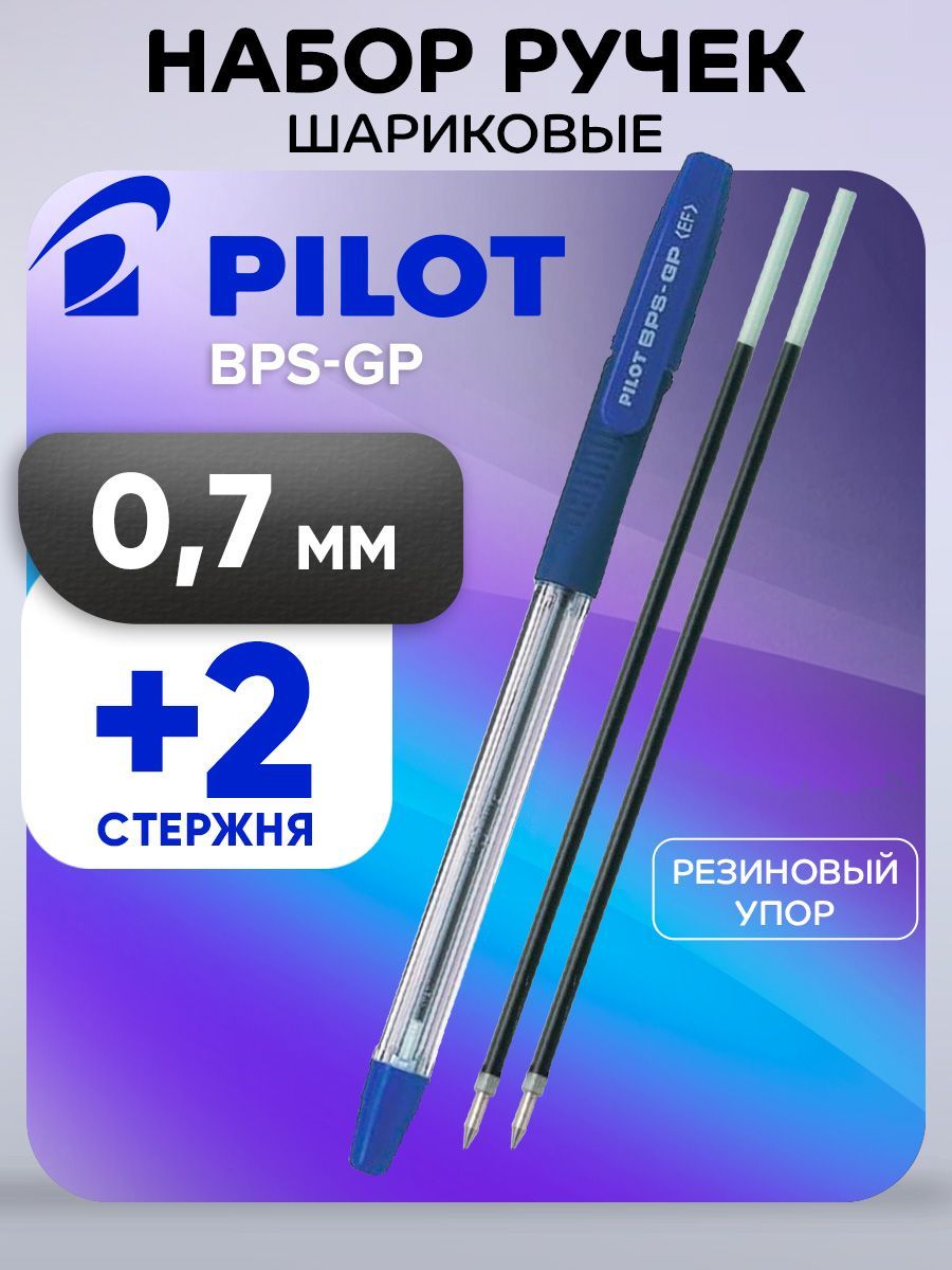 Набор ручка шариковая Pilot синяя, 0.7 мм со сменными стержнями