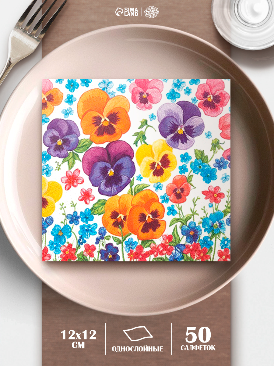 Салфетки бумажные Анютины глазки / Салфетки однослойные / Набор 50 шт.