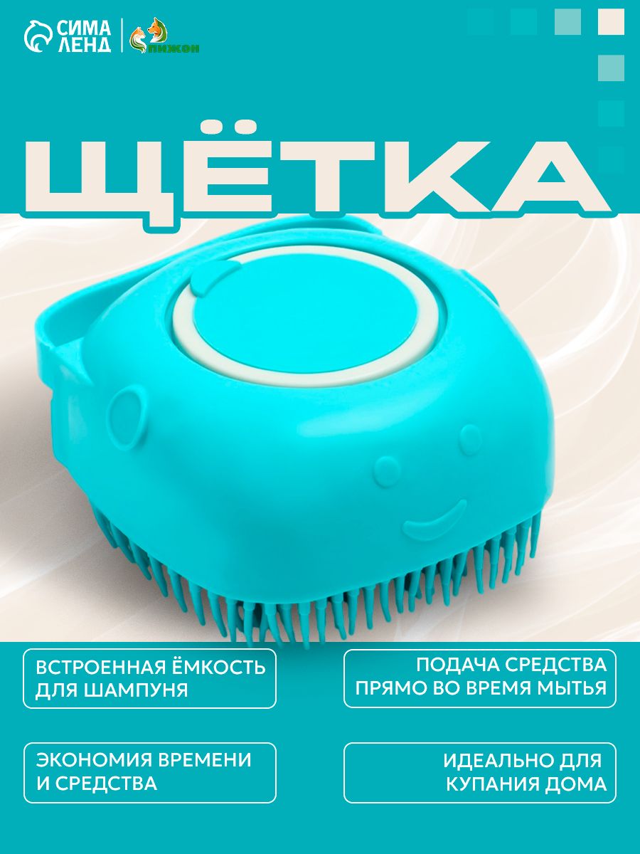 Щётка для мытья и массажа животных, с ёмкостью для шампуня, пластик, бирюзовая