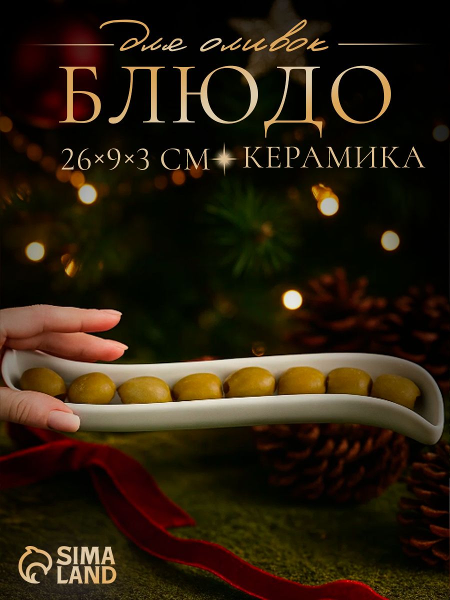 Блюдо сервировочное для подачи, блюдо керамическое "Серпан", объем 150 мл, размер 26х9х3 см, цвет белый