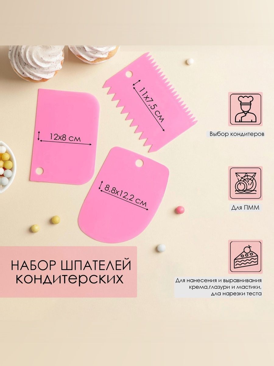 Набор шпателей кондитерских Доляна, 3 предмета, розовый