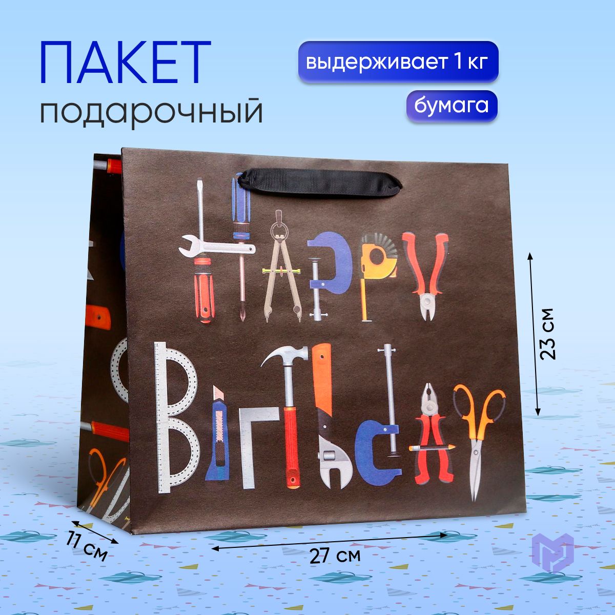 Пакет подарочный крафтовый Happy birthday 27 х 23 х 11.5 см