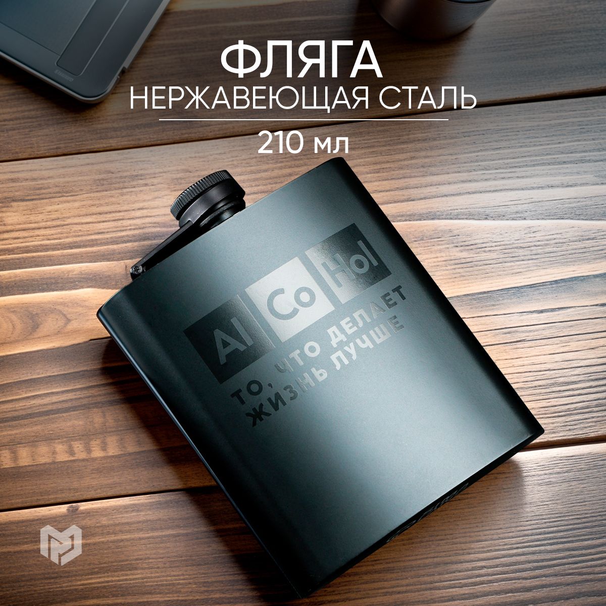 Фляжка для алкоголя, черная, 210 мл, 18+