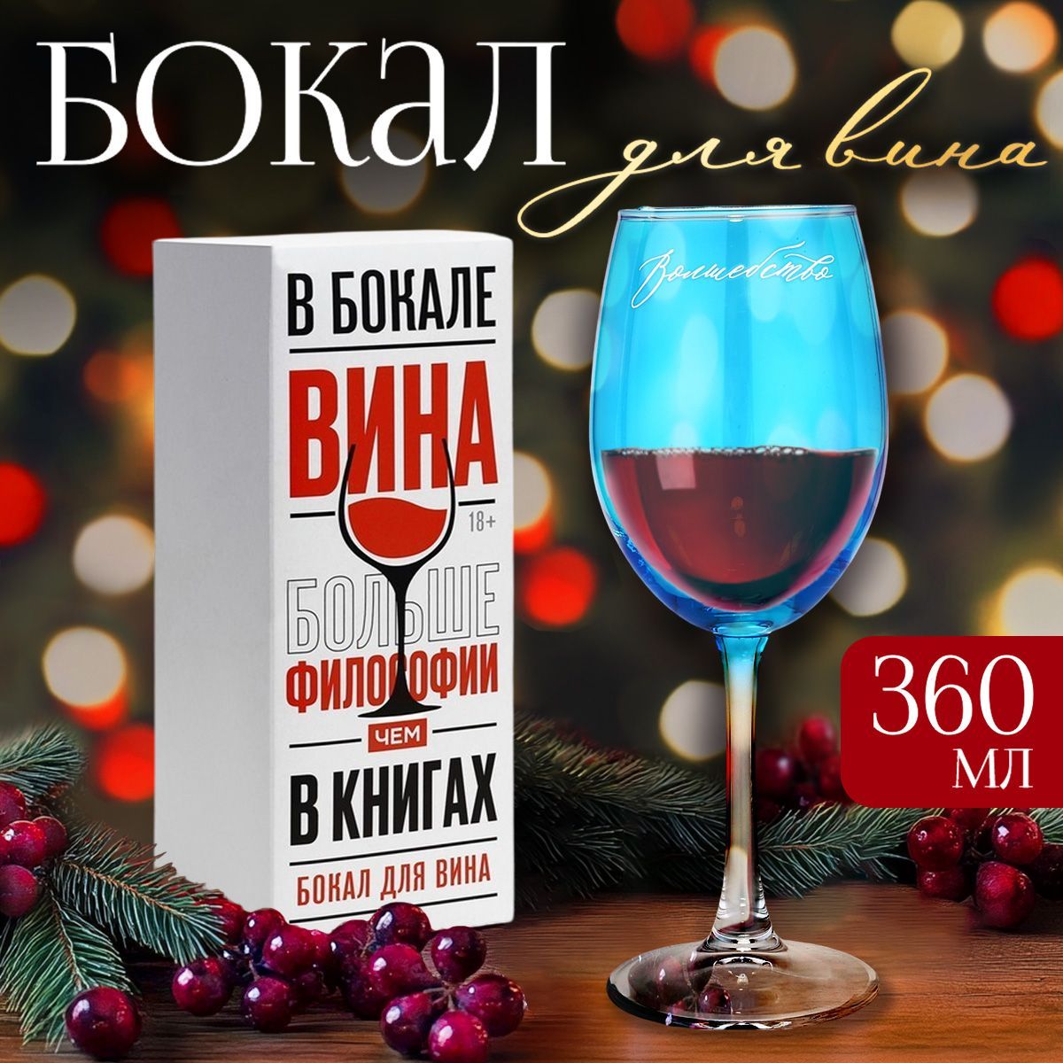 Новогодний бокал, для вина, в подарок, стекло, 360 мл