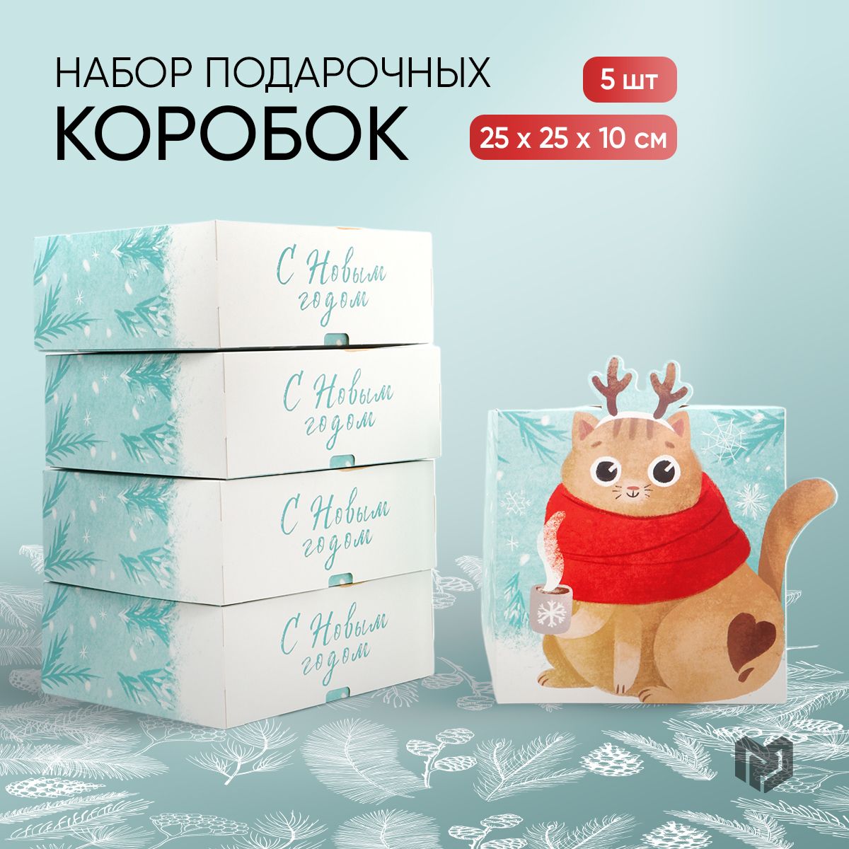 Набор коробок новогодних подарочных, 5 шт "Котик", 25 х 25 х 10 см