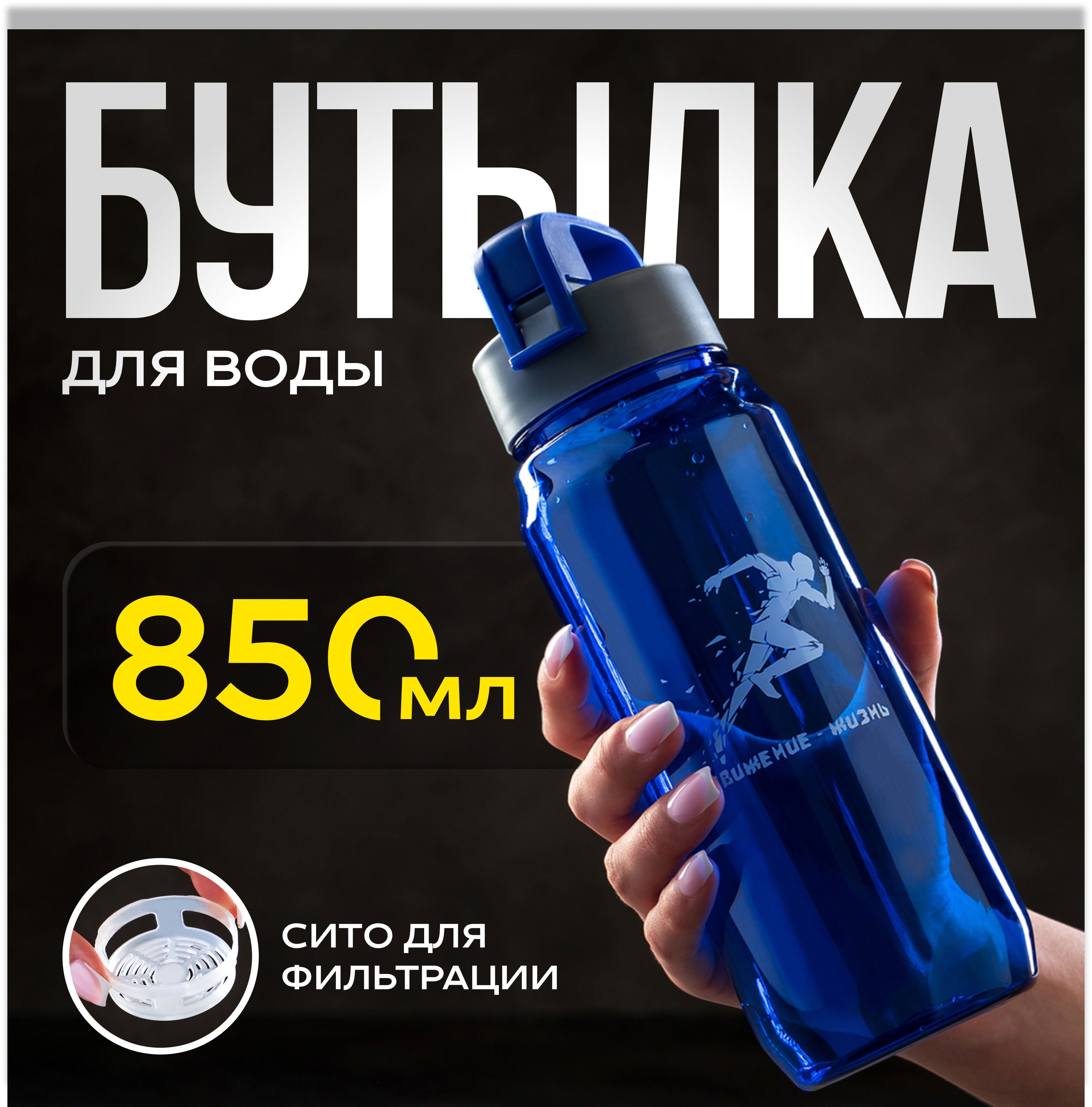 Бутылка для воды, спортивная, объем 850 мл