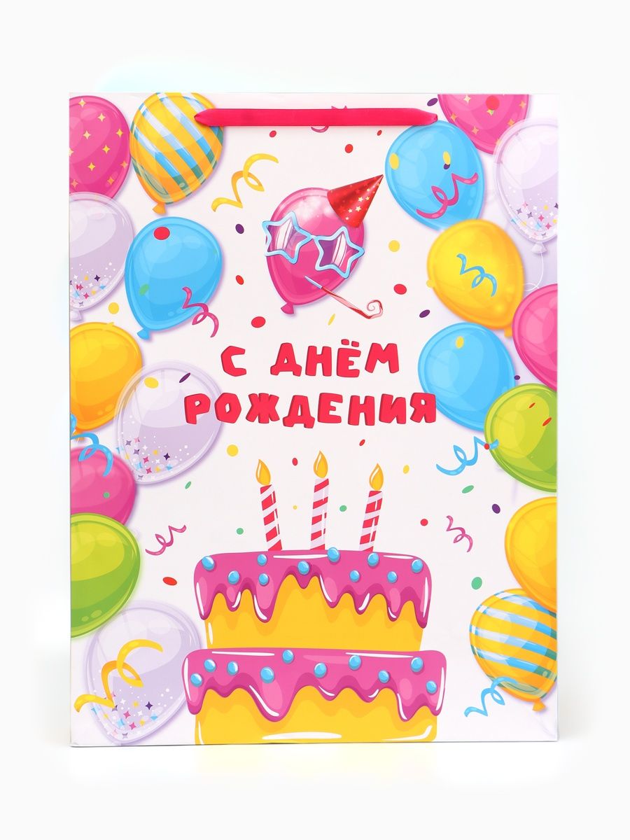 Пакет подарочный С Днем рождения, XXL, 46 х 61 х 20 см